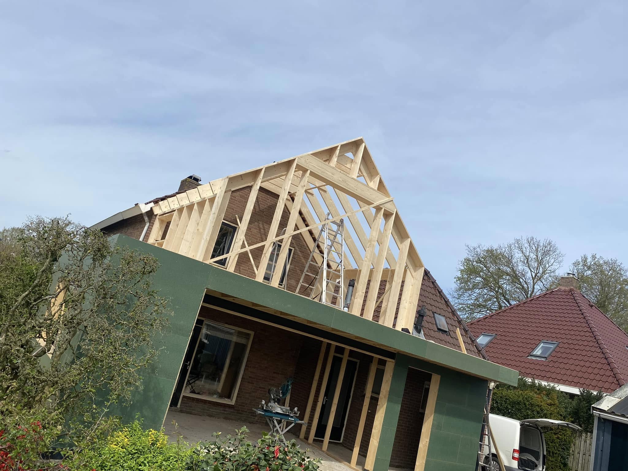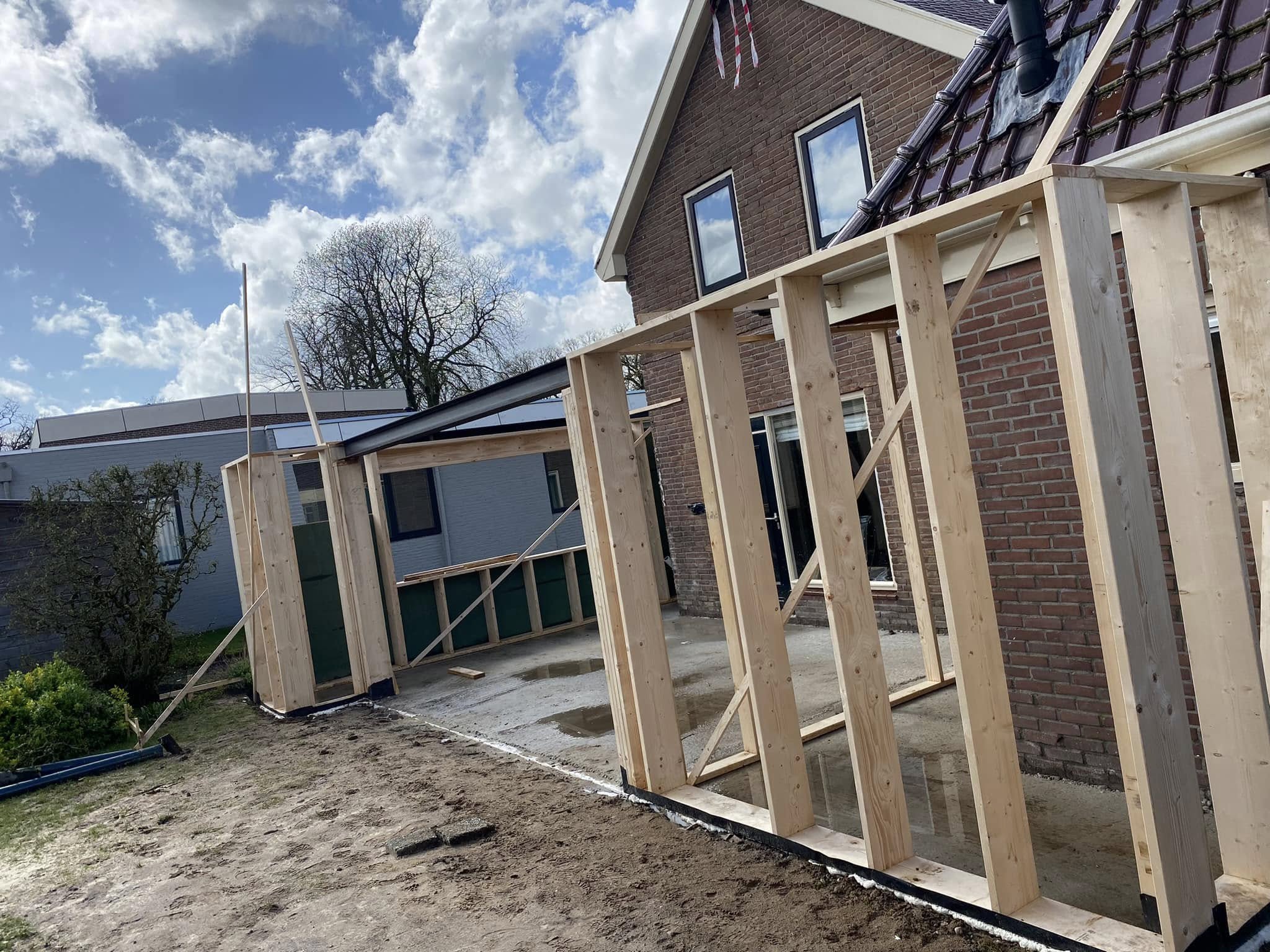 De fundering is volledig geïsoleerd aangelegd, waarna we het casco hebben opgebouwd met houten stijlen, een nieuwe kapconstructie en een strakke gevelafwerking. De aanbouw biedt nu extra leefruimte op de begane grond én een volwaardige extra kamer op de verdieping.