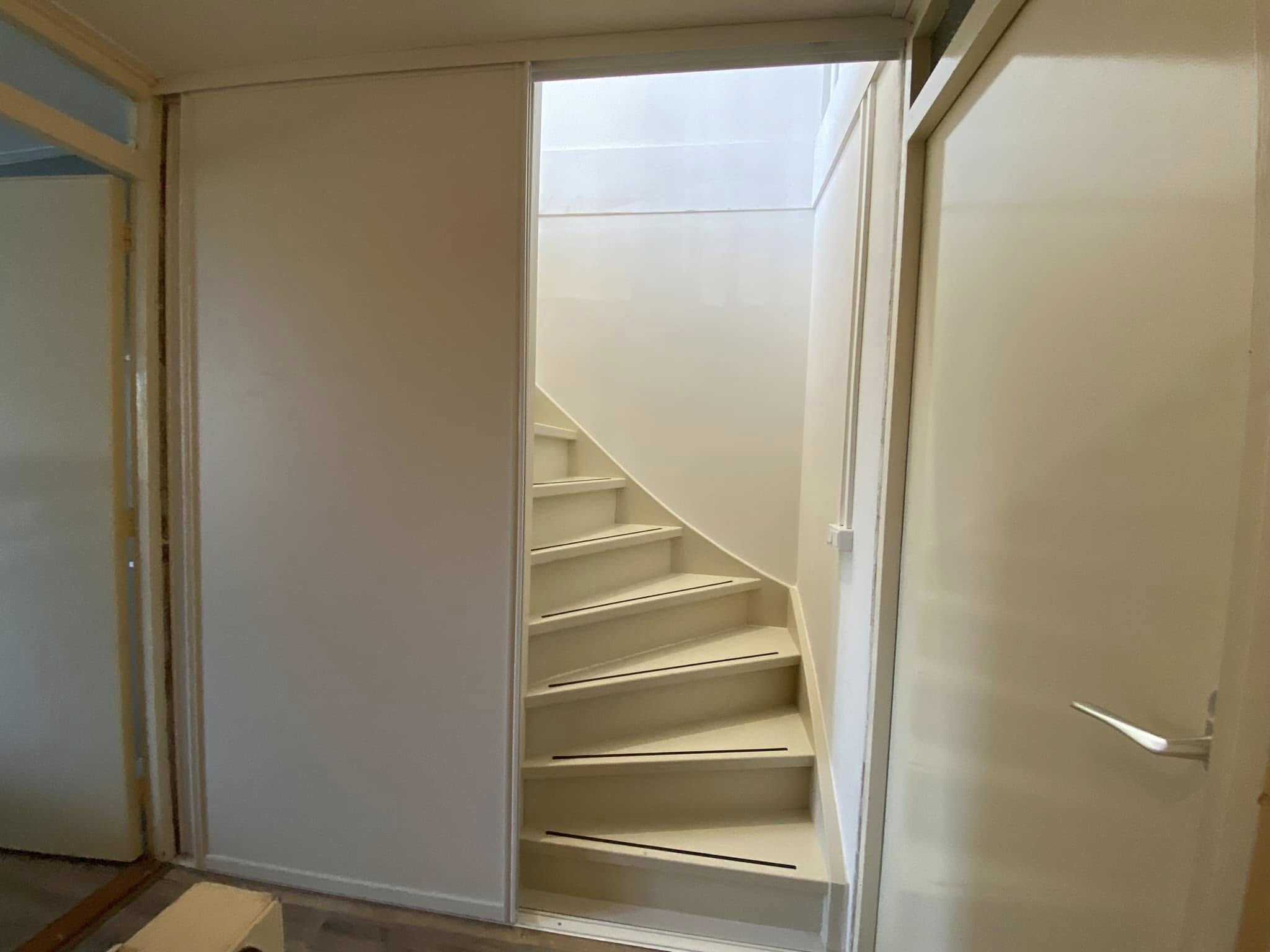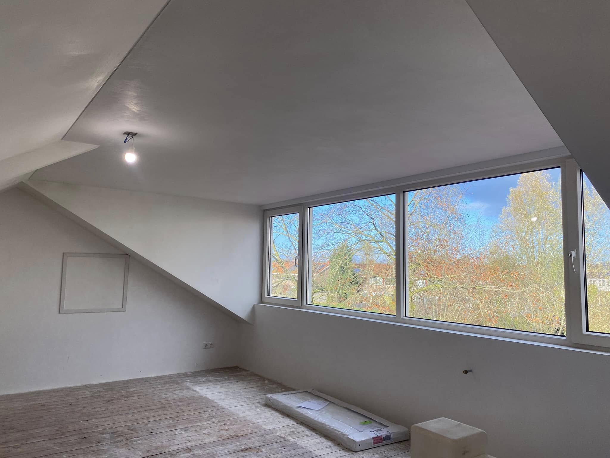 We begonnen met het vervangen van de vlizotrap door een vaste trap, zodat de ruimte makkelijk en veilig bereikbaar werd. Daarna plaatsten we een dakkapel, wat zorgde voor extra licht en een ruimtelijk gevoel.